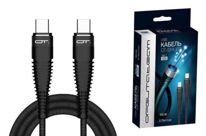 Кабель Type-С - Type-C Орбита OT-SMU03 Чёрный PD100W 1.2м