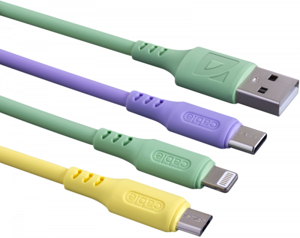 Кабель USB - 3в1  F207,green,1,2м, силикон пакет Defender
